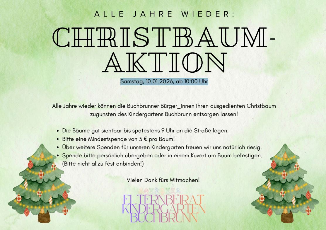 Alle Jahre wieder können die Buchbrunner Bürger_innen ihren ausgedienten Christbaum zugunsten des Kindergartens Buchbrunn entsorgen lassen!