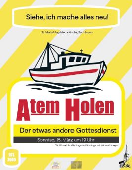 Am Sonntag, 15. März findet der nächste Atemholengottesdienst um 19:00 Uhr in Buchbrunn statt. Unter dem Thema: Alles neu